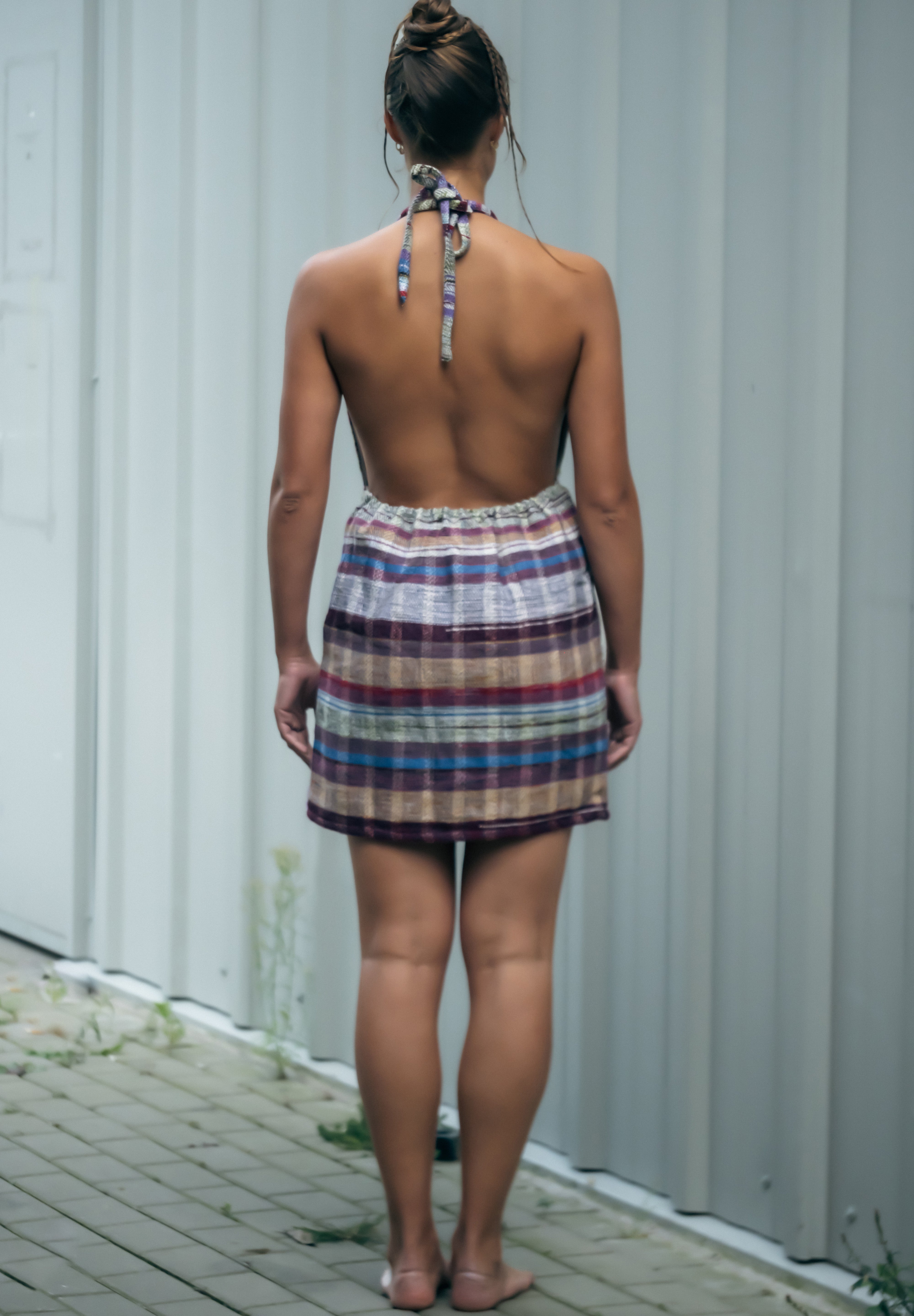 Mamta Dress / Striped Purple Orange Brown